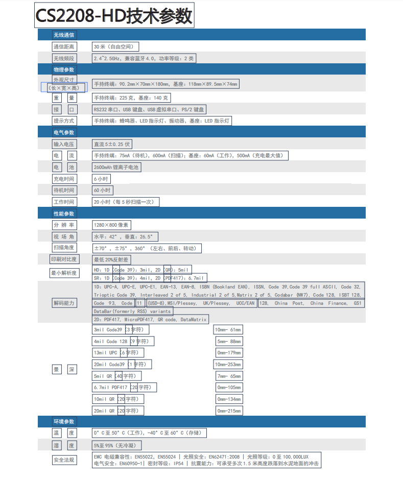 6.支持離線存儲功能(可存儲5000個EAN-13條碼)